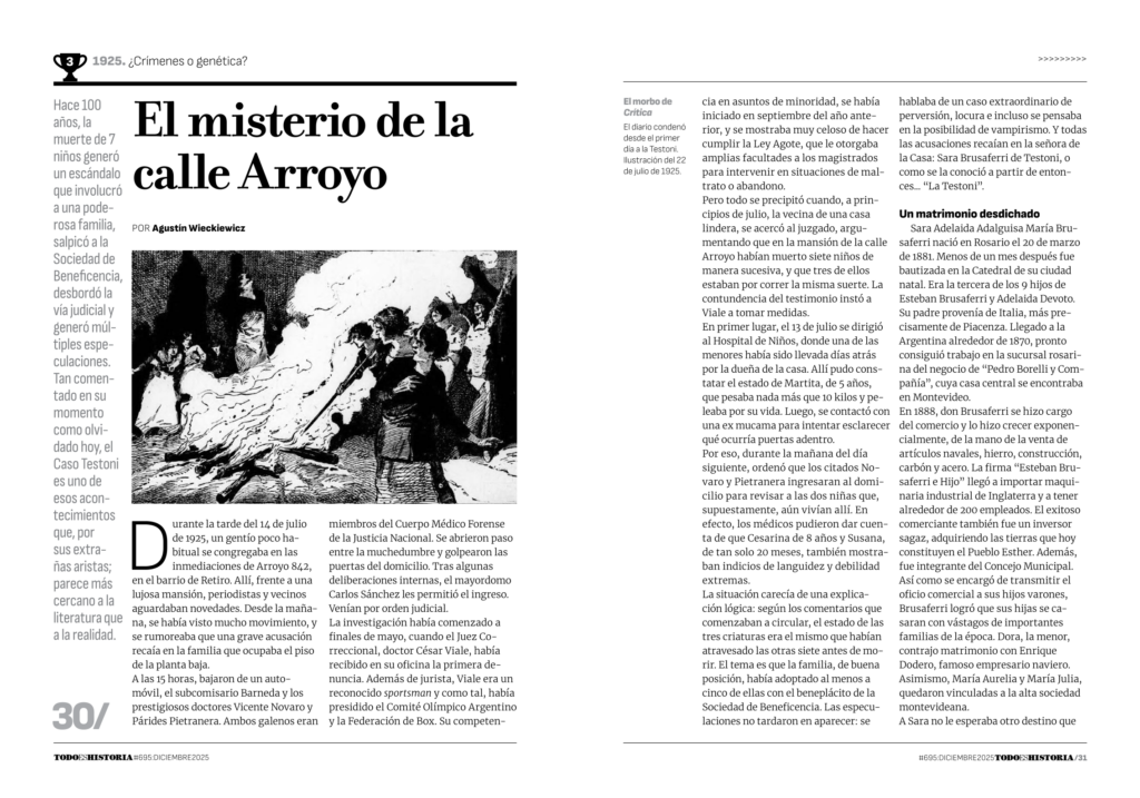 Hace 100 años, la muerte de 7 niños generó un escandalo que involucró a una poderosa familia, salpicó a la Sociedad de Beneficencia, desbordó la vía judicial y generó múltiples especulaciones. Tan comentado en su momento como olvidado hoy, el Caso Testoni es uno de esos acontecimientos que, por sus extrañas aristas, parece más cercano a la literatura que a la realidad.